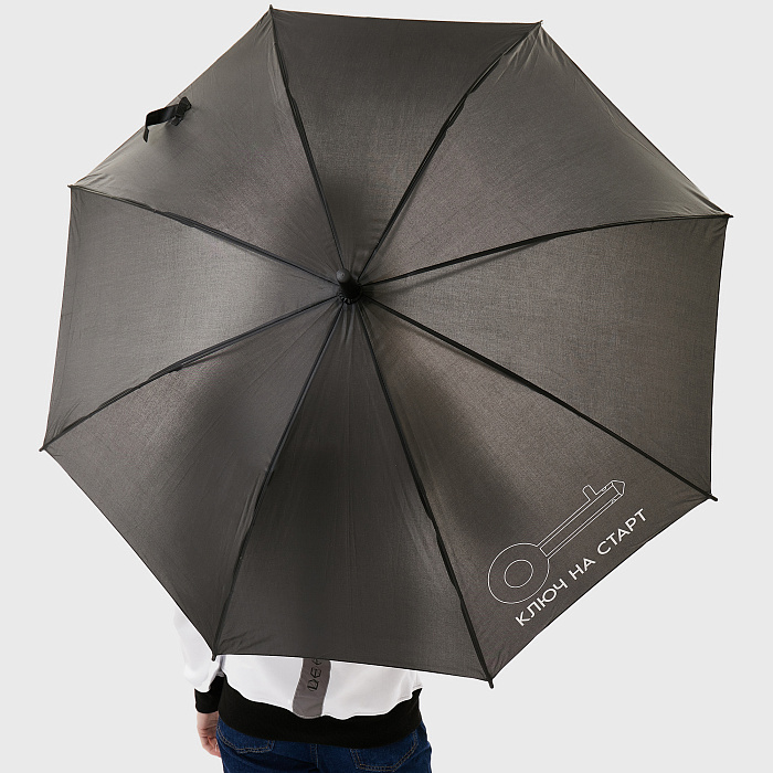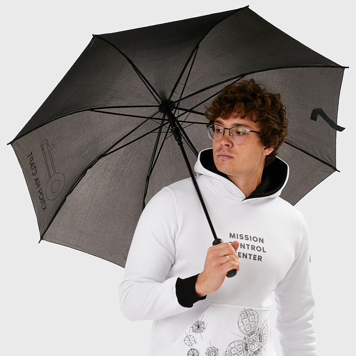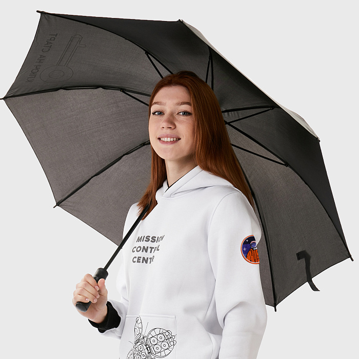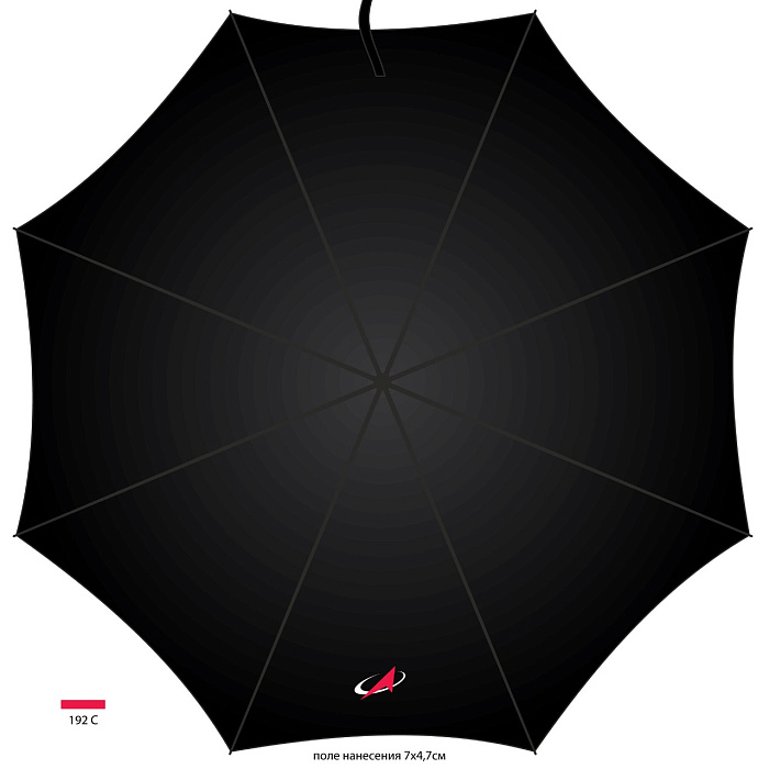 Зонт-трость с логотипом "Роскосмос", черный, полуавтоматический.