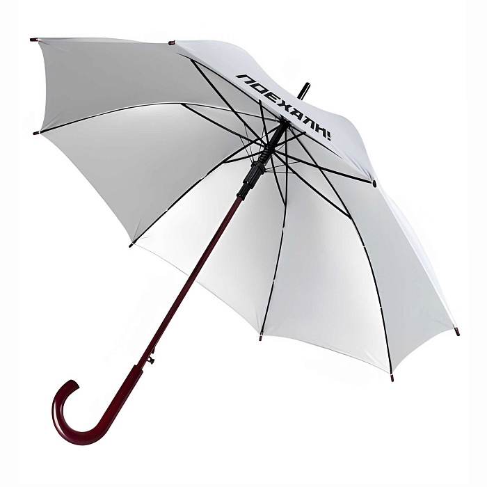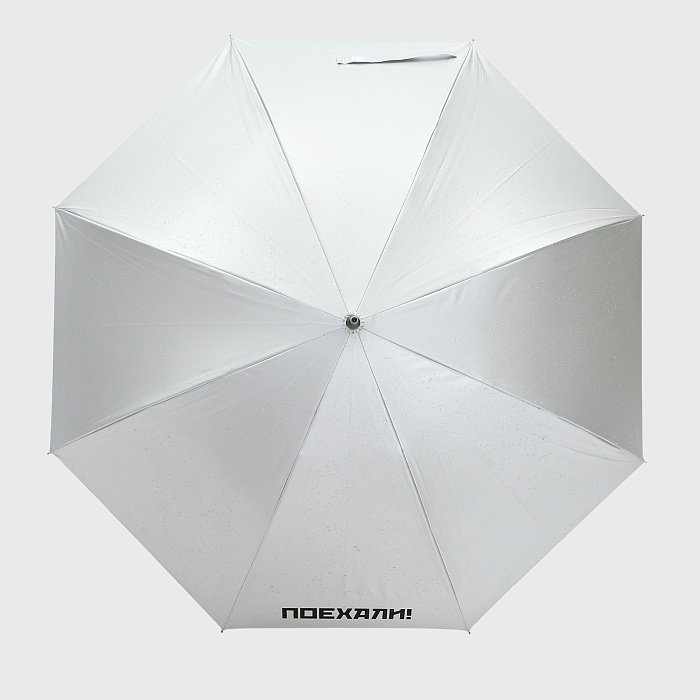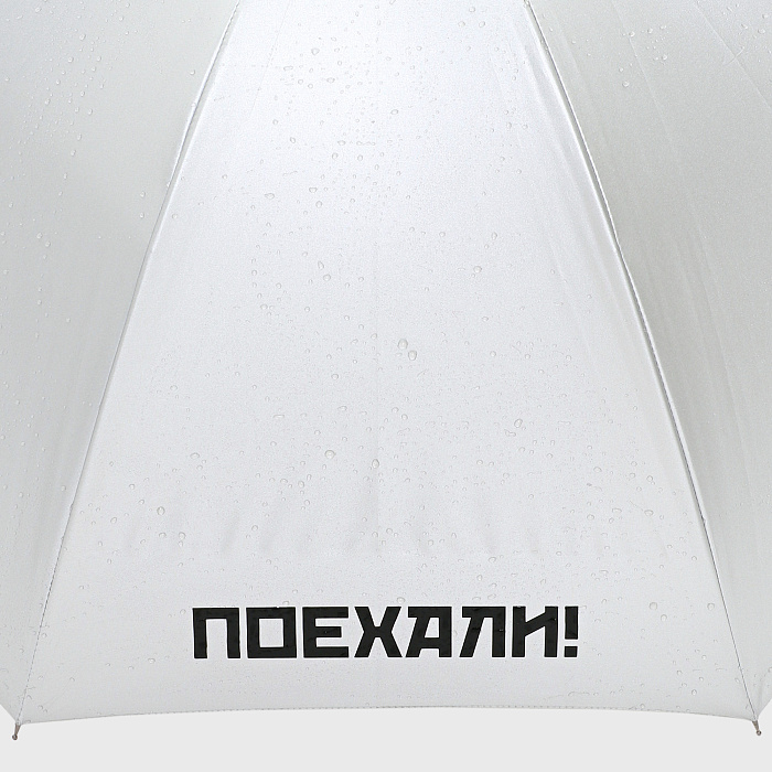 Зонт-трость "Поехали" белый,  серебристый изнутри.