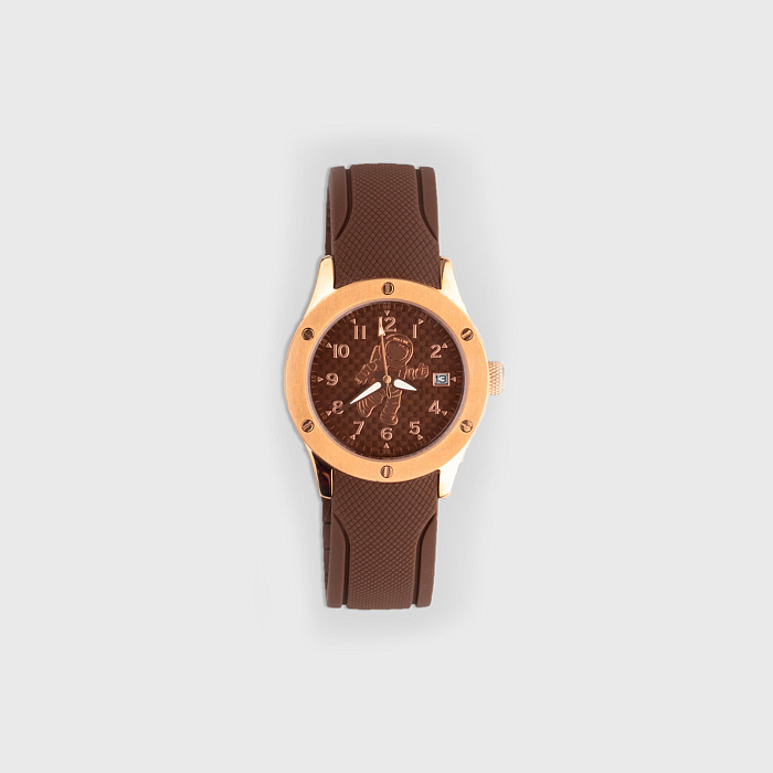 Часы наручные детские "Космонавт" коричневый каучук ремешок, замок-бабочка арт.88499804 кк, КТ/ЦМ