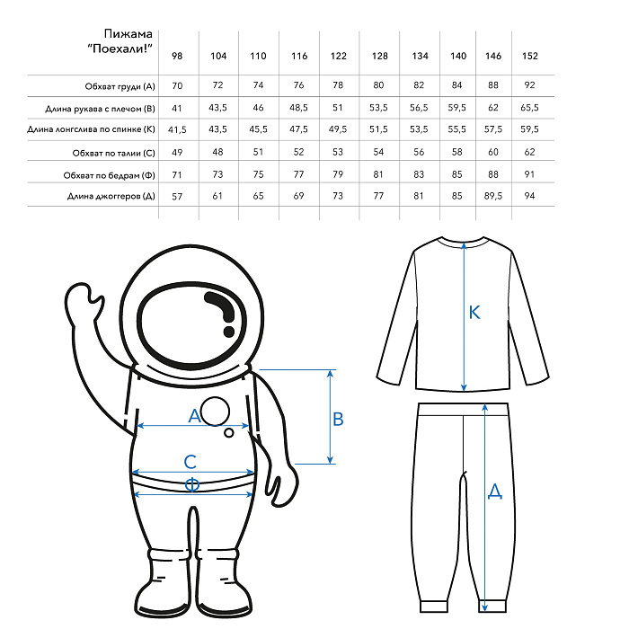 Пижама детская  "Поехали!", василек, р.128