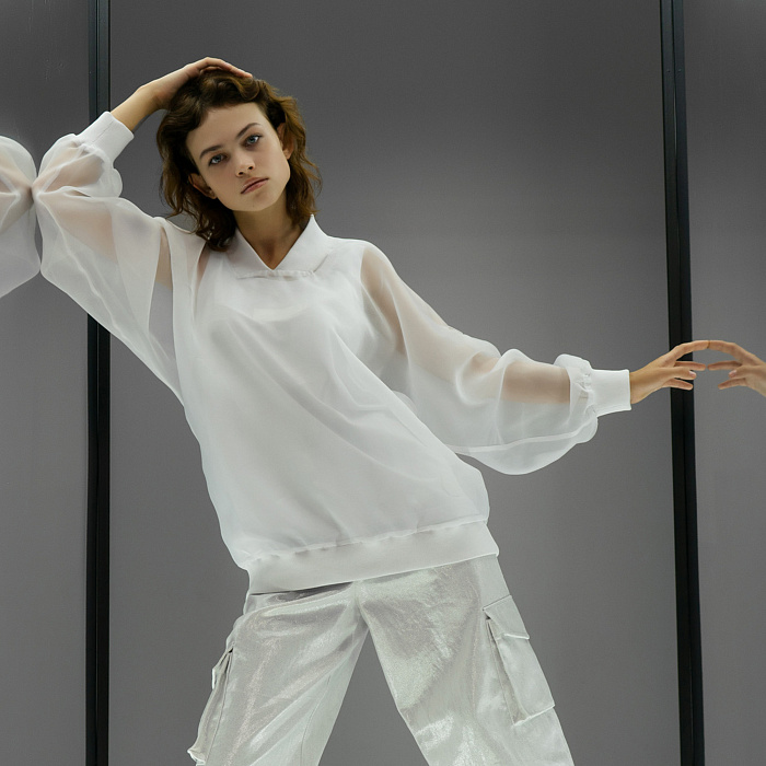 Блузон-свитшот женский из органзы, белый, S, КТ/ББР